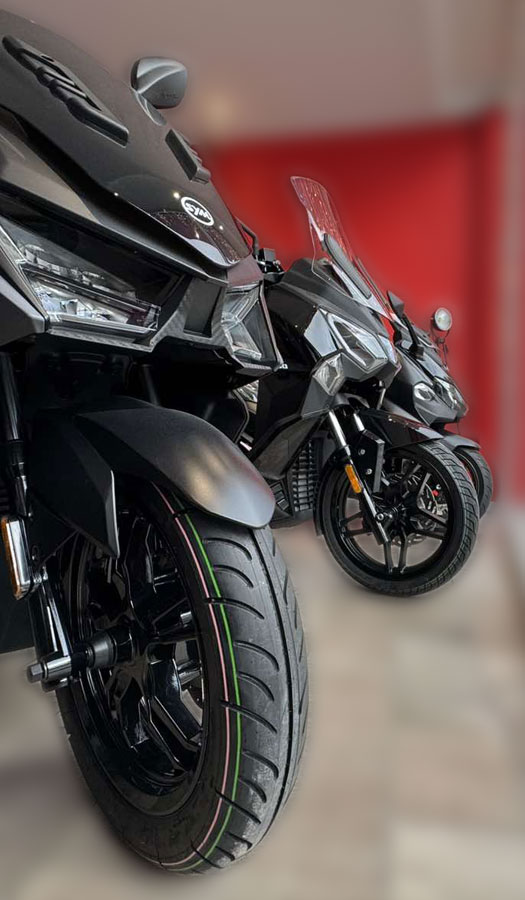 Προσφέρουμε μηχανές από τις κορυφαίες μάρκες SYM, DAYTONA MOTORS και QJMOTOR, που συνδυάζουν ποιότητα, αξιοπιστία και μοντέρνο σχεδιασμό. Για τη διευκόλυνσή σας, παρέχουμε ευέλικτα προγράμματα πληρωμής και χρηματοδότηση μέσω συνεργασίας με τις Alpha Bank και TBI Bank.